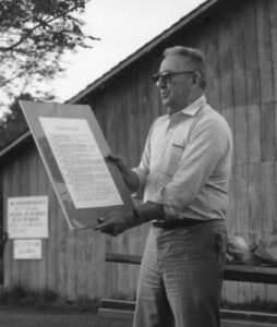Elmer served as Vermont’s Commissioner of Agriculture from 1955 to 1962, reappointed by four governors in recognition of his effective leadership. During his tenure, Vermont achieved major public health milestones, being declared tuberculosis-free and later accredited brucellosis-free by the United States Department of Agriculture. His administration guided the dairy industry through significant regulatory changes, including requirements for farm bulk tanks and cement stables. At the time, Vermont’s agricultural identity was so strong that news outlets noted cows outnumbered residents, supported by tax-based livestock records. Elmer also served in numerous leadership roles, including vice president of the Mount Mansfield Cooperative Creamery, president of the Vermont Cooperative Council, and president of the American Dairy Council of Vermont. He contributed to the formation of the Federal Milk Marketing Order and was recognized in the New England Green Pastures Program. After leaving office, he received an Honorary Doctorate in Science from the University of Vermont and was named New England Agricultural Statesman in 1965, honoring his integrity, perspective, and practical wisdom.