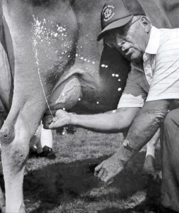 Pat’s career in the dairy industry spanned forty-four years, beginning in 1950 when he purchased his farm in Danville. He developed a herd of one hundred registered and grade Holsteins, achieving an impressive production average of approximately 25,000 pounds of milk. Pat served in numerous leadership roles, including director and treasurer of the Regional Cooperative Marketing Administration, and contributed to agricultural policy through service on the advisory committees of Jim Jeffords and Patrick Leahy. He spent seventeen years on the state Farm Service Agency Committee, chairing it for thirteen. Pat was a longtime director of Cabot Cooperative Creamery for thirty-two years and served as president for twenty-seven, playing a key role in Cabot’s merger with AgriMark in 1992. He also held national leadership positions, including director of the National Milk Producers Federation, where he was later named honorary director for life. Though retired from dairying in 1994, Pat remains active on the family farm operated by his son and continues serving his community in Danville.